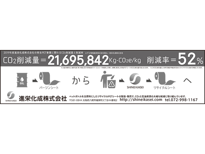 包装業界紙の広告デザイン ビジュアル Client: 進栄化成(株) Creator: (有)キューズ