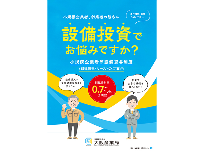 小規模企業者等設備貸与制度パンフレットおよびチラシのデザイン ビジュアル Client: 公益財団法人 大阪産業局 Creator: カレントブランディングスタジオ(株)