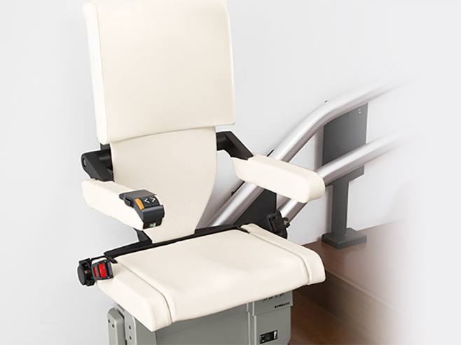 いす式階段昇降機のデザイン プロダクト Client: クマリフト(株) Creator: (株)ハーズ実験デザイン研究所