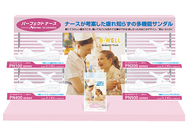 サンダルの店頭ディスプレイデザイン ビジュアル Client: (株)ビーウェル Creator: hyphen design studio