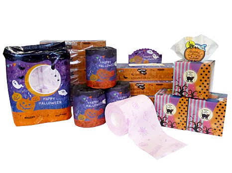 ハロウィン柄のティシュ・トイレットペーパーのパッケージ ビジュアル Client: イトマン(株) Creator: (株)ジャパンシステムアート