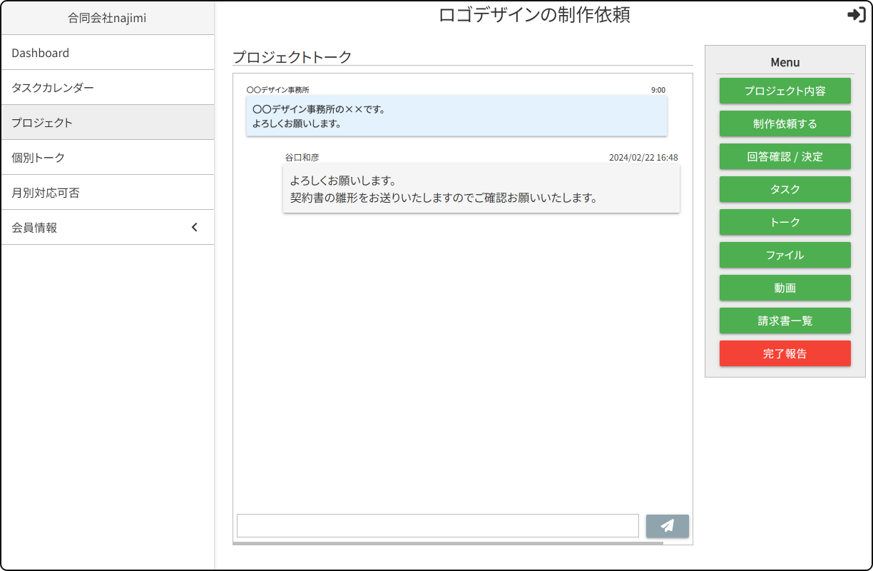 (契約書のやり取りや納品ファイルの送信もシステム内で可能です)